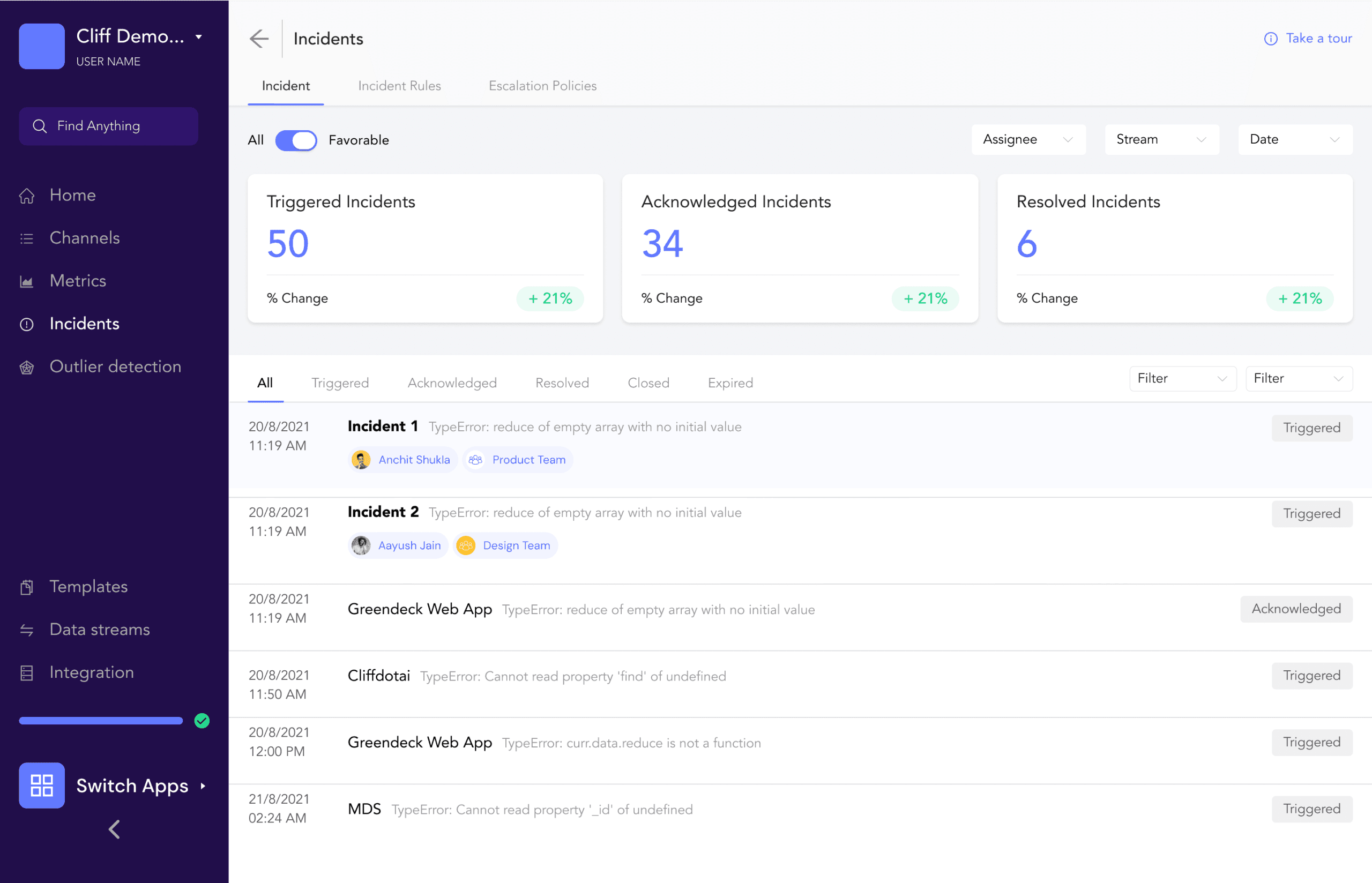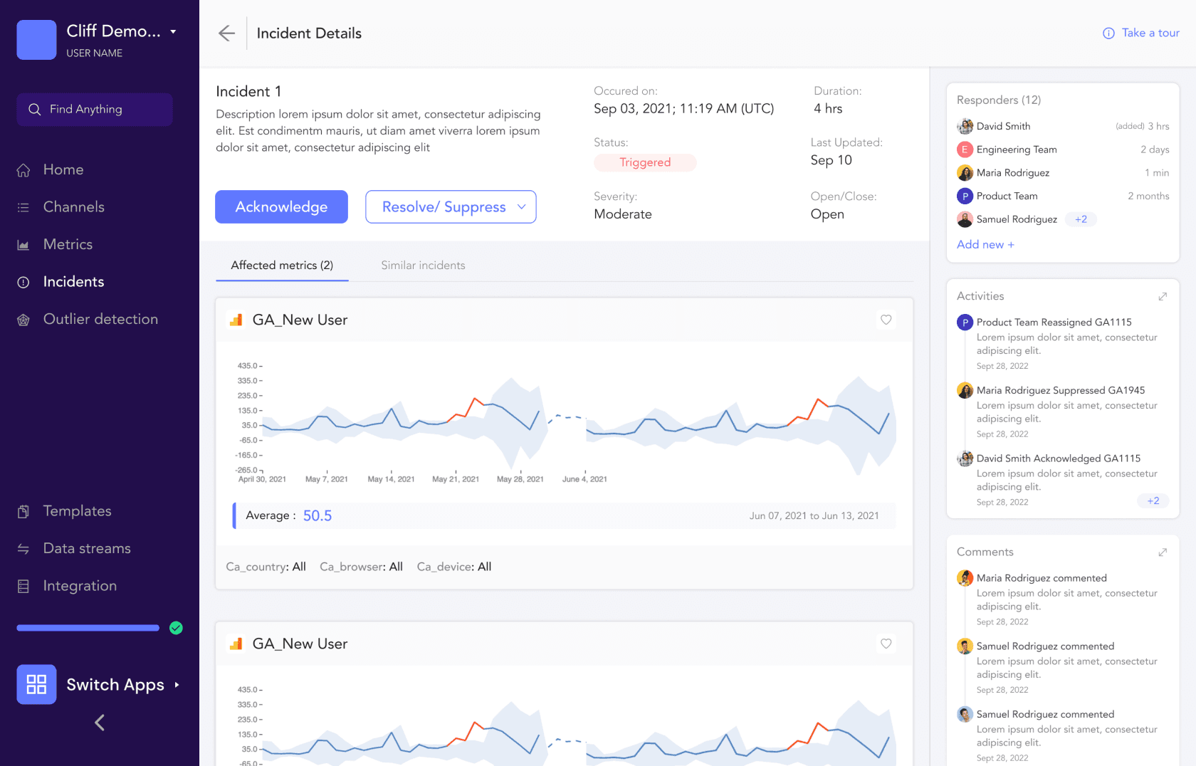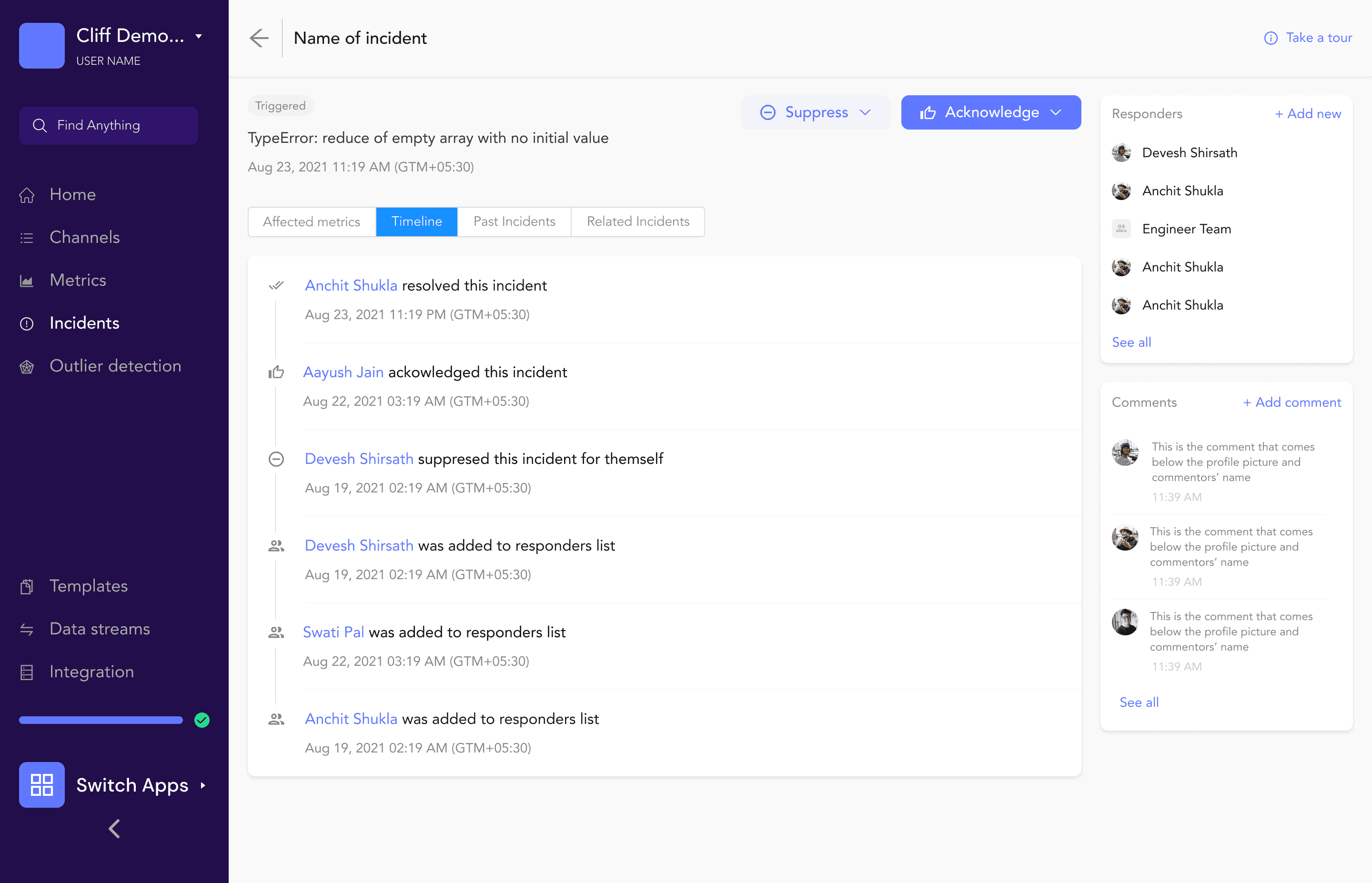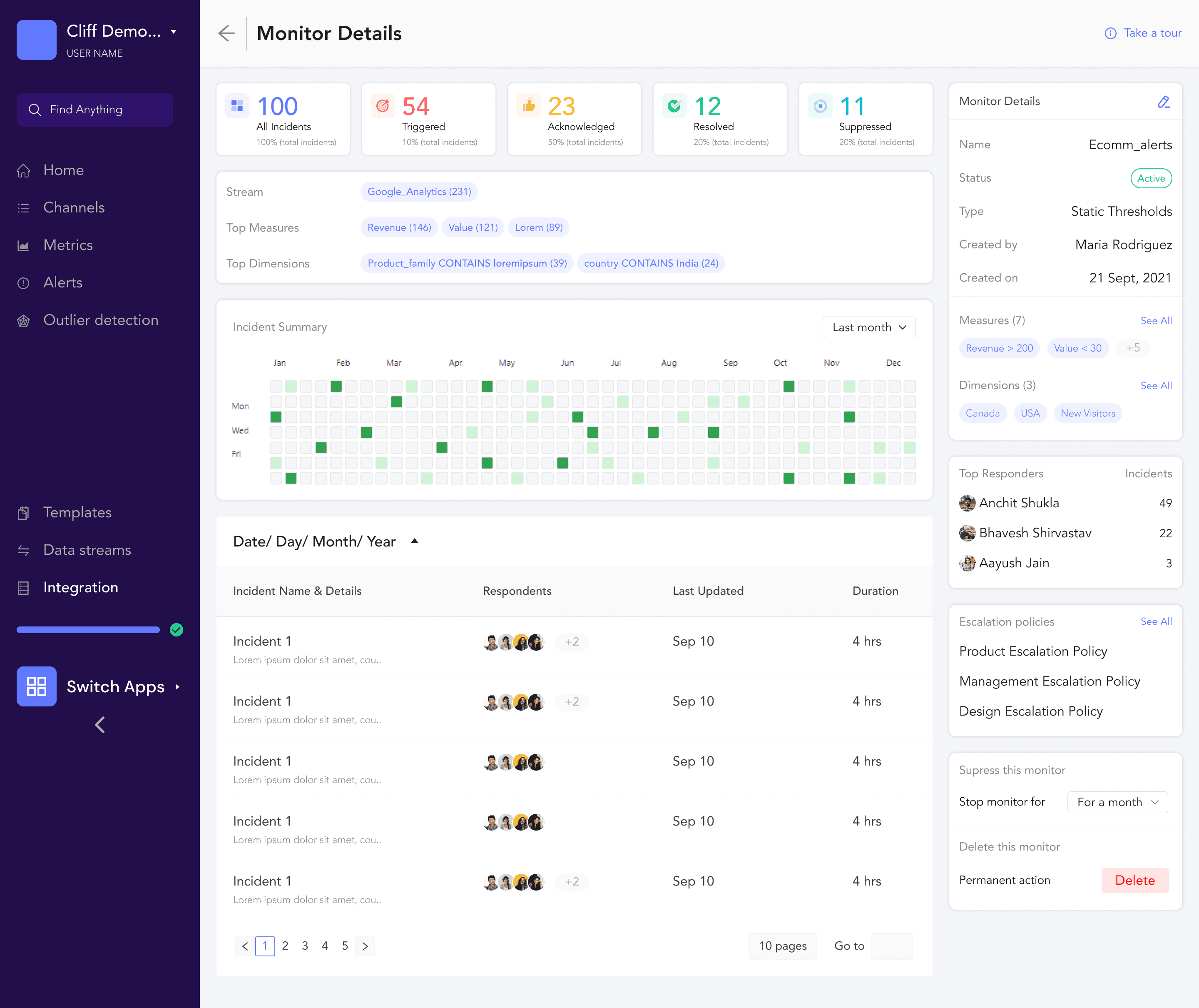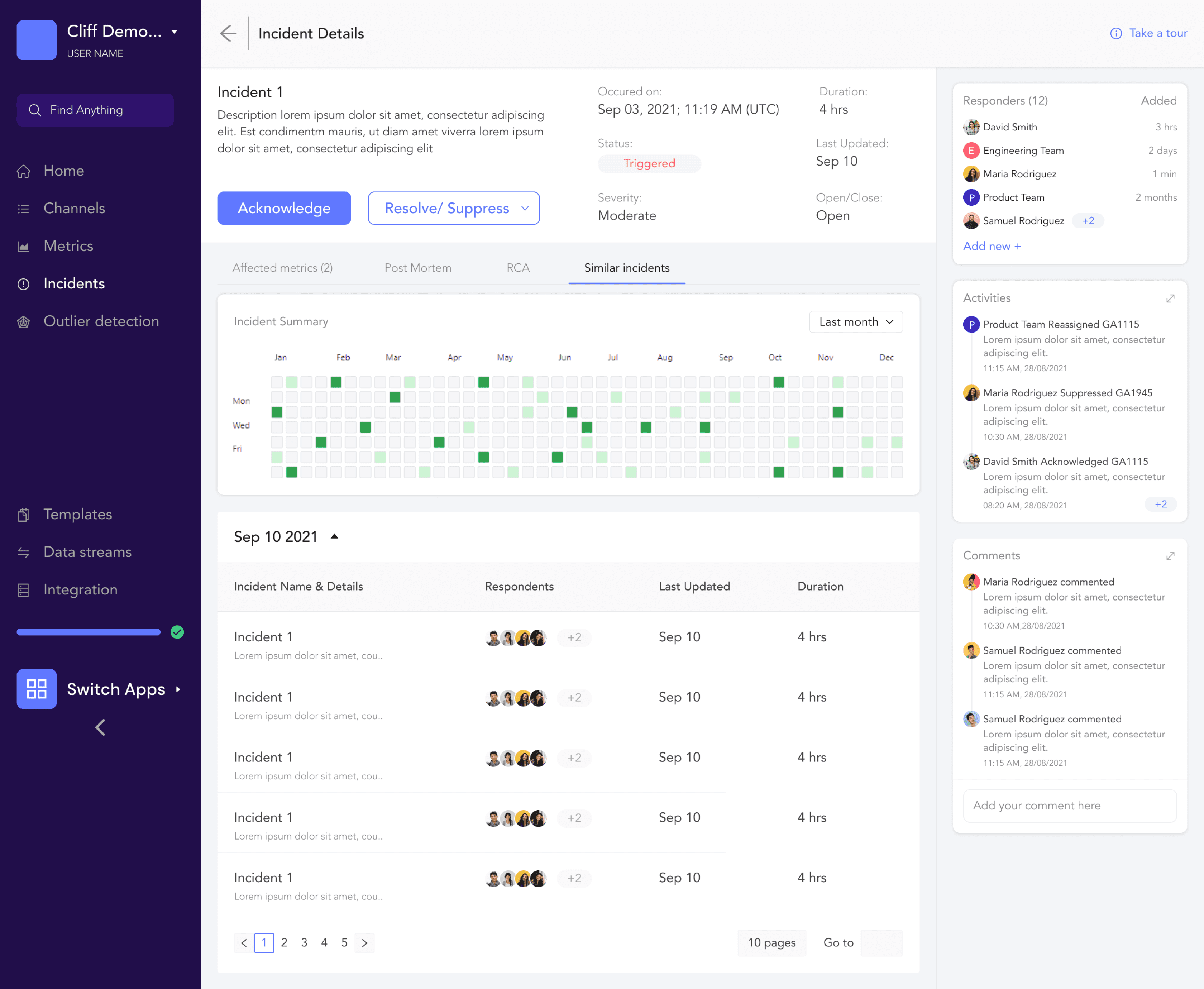 At Cliff.ai, we lacked a central incident repository for users to quickly gather insights from metric incidents. Thus, we created a date-wise incident page to streamline this process.