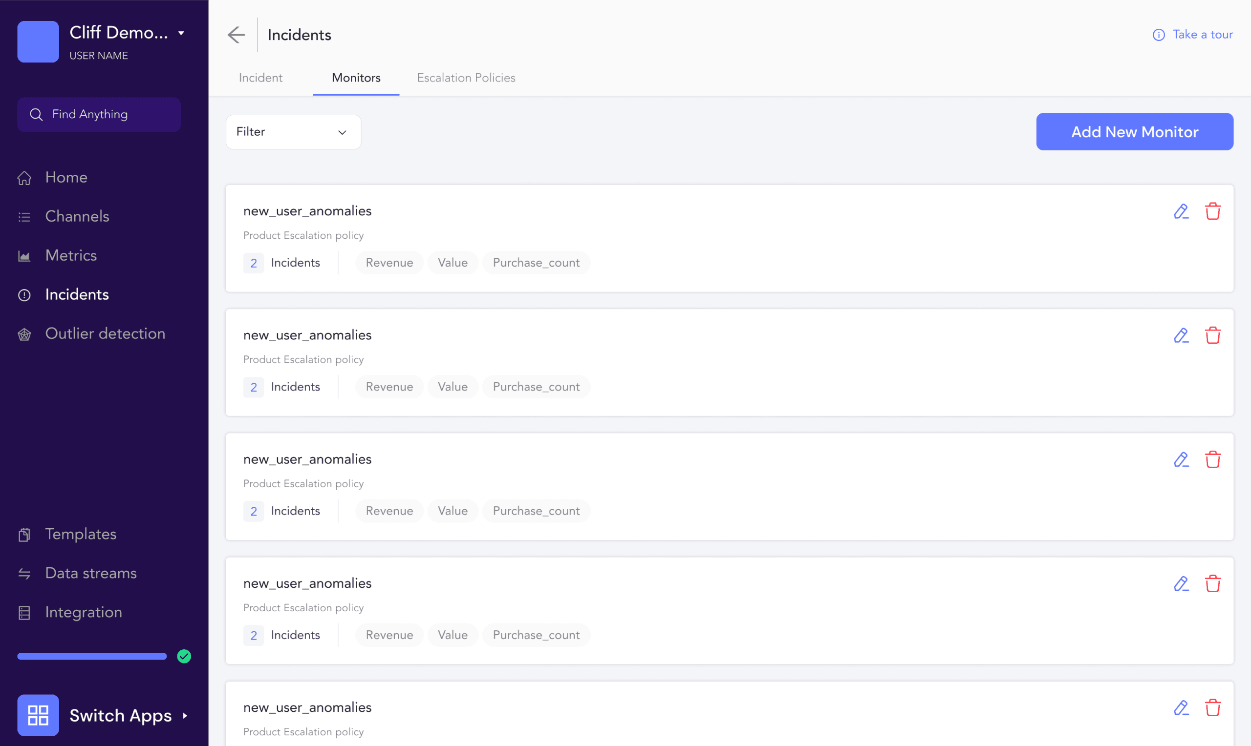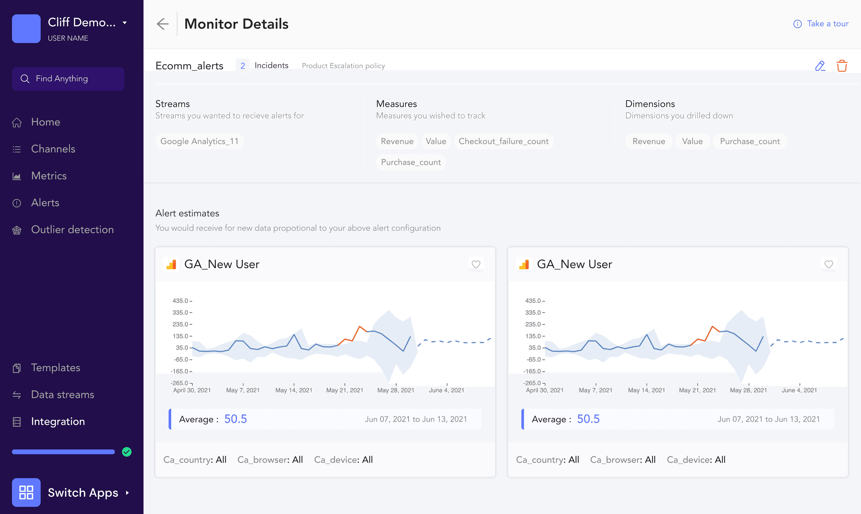 Cliff.ai (B2B SaaS) is a business reliability tool that helps companies actively monitor their important business metrics, automatically catch unexpected spikes or dips in the metrics and alert the users. However, users encountered challenges with this core feature.