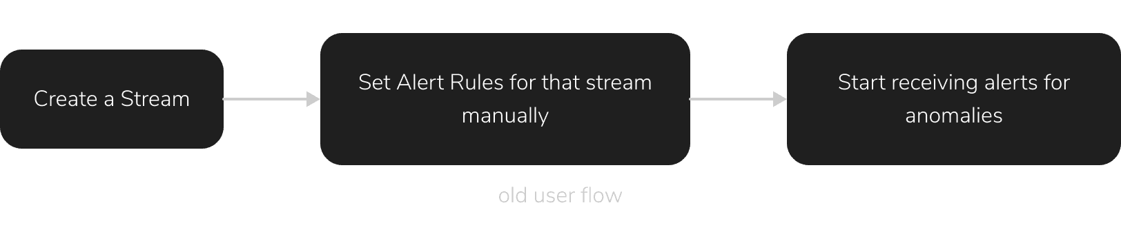 The new user flow involves setting the threshold value and configuring the alert system in a sequential queue: